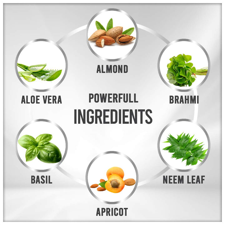 - The ingredients in the face scrub for dry skin include Almond Oil, Brahmi, Neem, Tulsi, Aloe Vera and Walnut work together as a wonderful exfoliator and purifier, assisting in the elimination of dead skin cells, with Neem's purifying properties, on the other hand help to minimize acne.