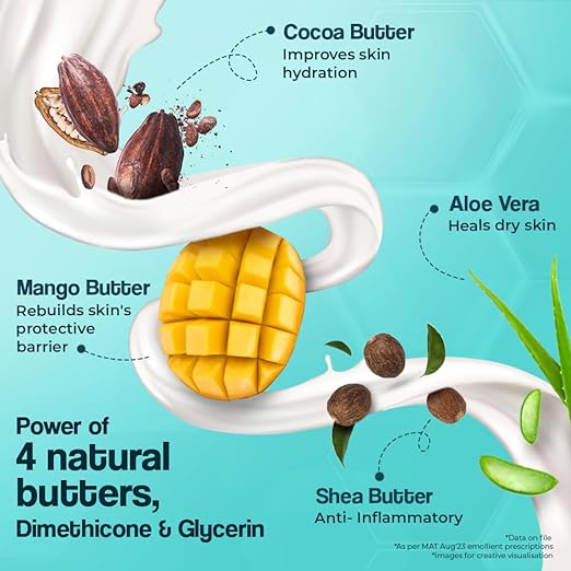 - A unique combination of 4 butters: shea, aloe, cocoa & mango help restore a smooth & supple skin