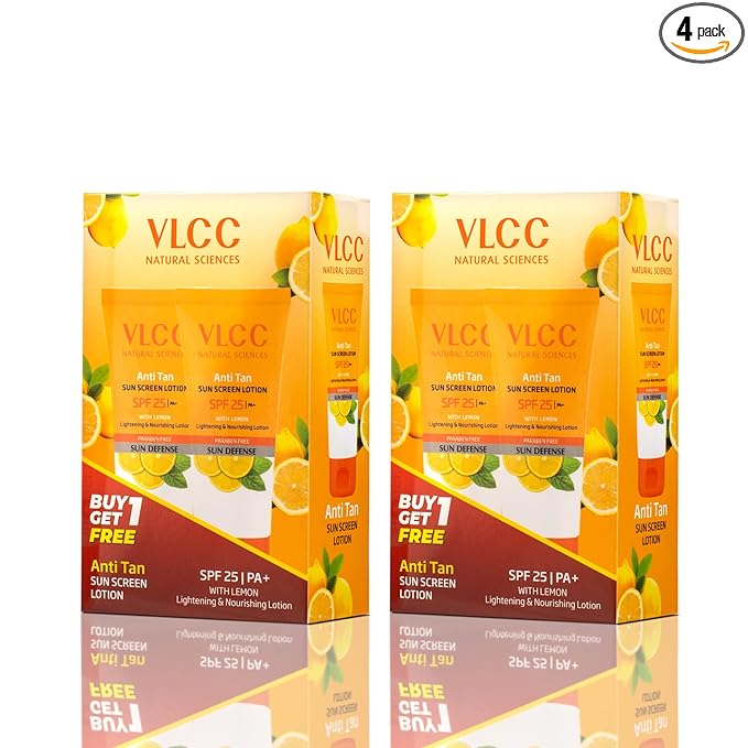 VLCC Anti Tan Sun Screen Lotion -SPF 25 PA -150ml X 4- Buy One Get One- (600 ml) ( Pack of 2 ) With Niacinamide & Kojic acid.