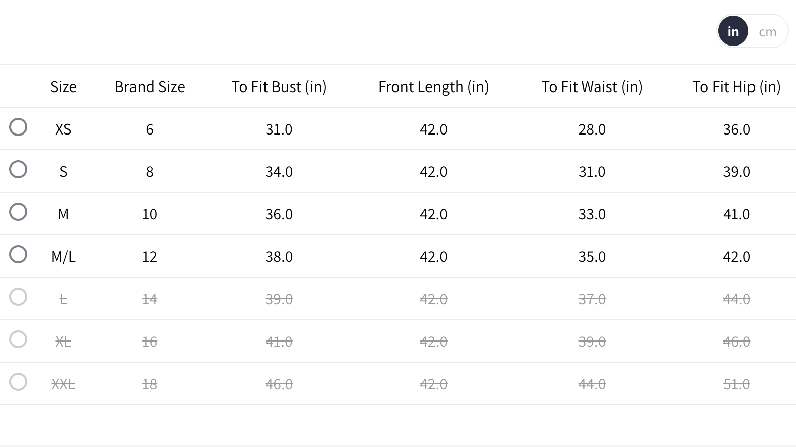 - Knee length with curved hem