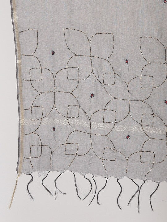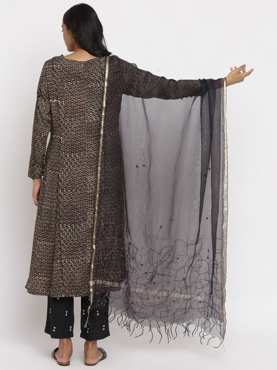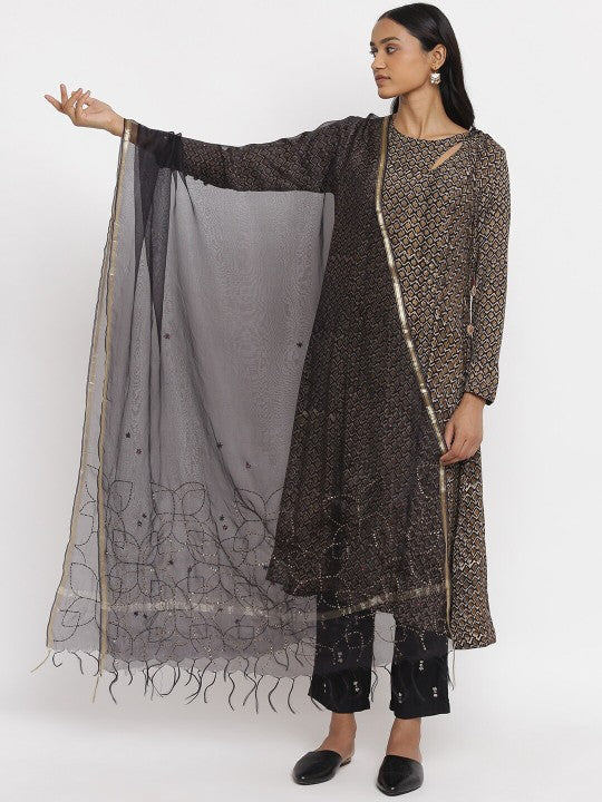 Product Details: Black solid dupatta, tasselled border Size & Fit: Dupatta :- width=88cm, Length=2m 30cm Material & Care: Dry Clean Only - 82 % Silk 18 % Zari