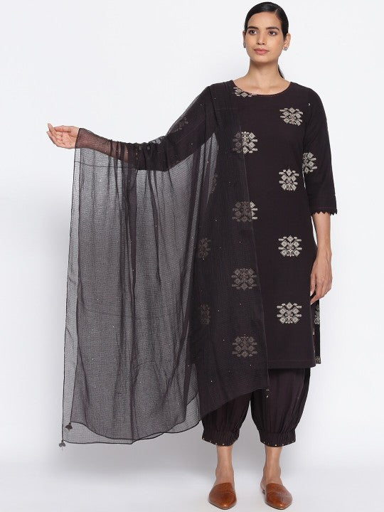 W The Folksong Collection Checked Pure Cotton Dupatta