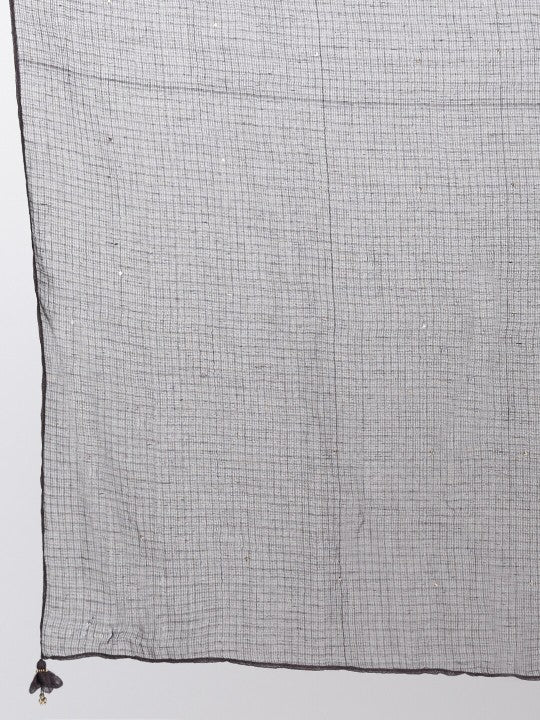 Product Details: Checked dupatta, tasselled border Size & Fit: Length 2.25 meters Width 0.89 meters Material & Care: Pure Cotton Dry Clean