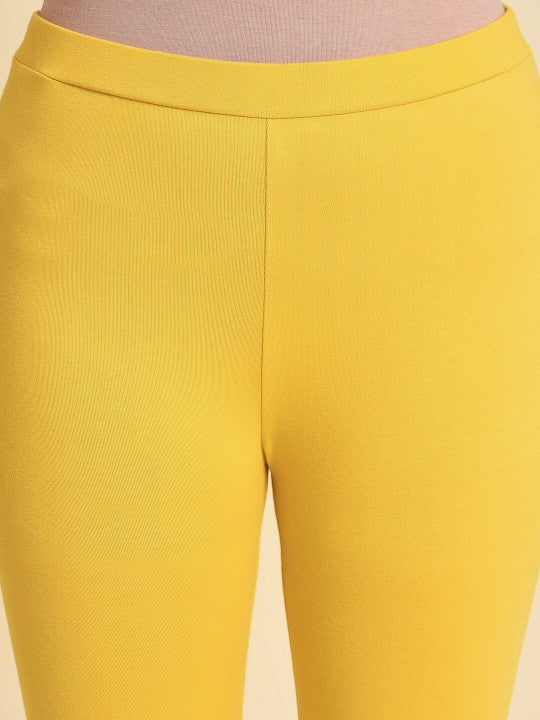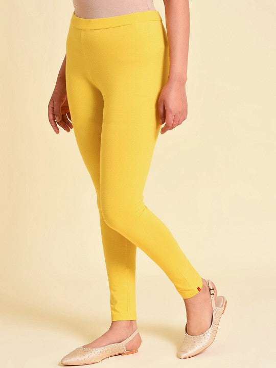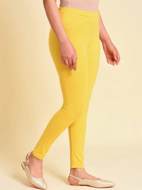 - Yellow solid ankle-length leggings, has an elasticated waistband and slip-on closure
