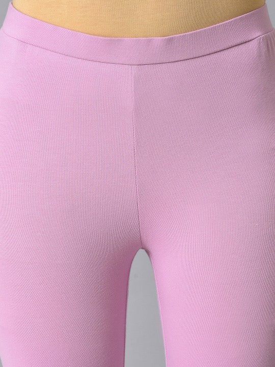 Product Details: Lavender-coloured solid ankle-length leggings, has an elasticated waistband and slip-on closure Material & Care: 95% Cotton 5% Lycra Machine Wash