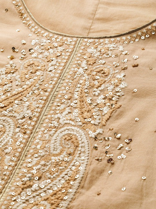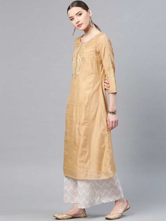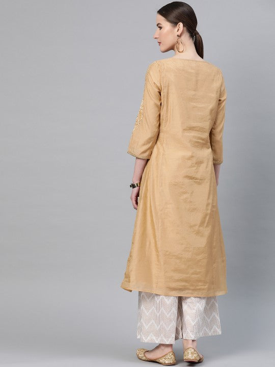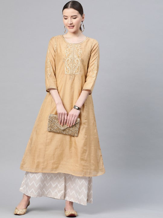 W Women Beige Ethnic Motifs Embroidered & Sequinned A-Line Kurta