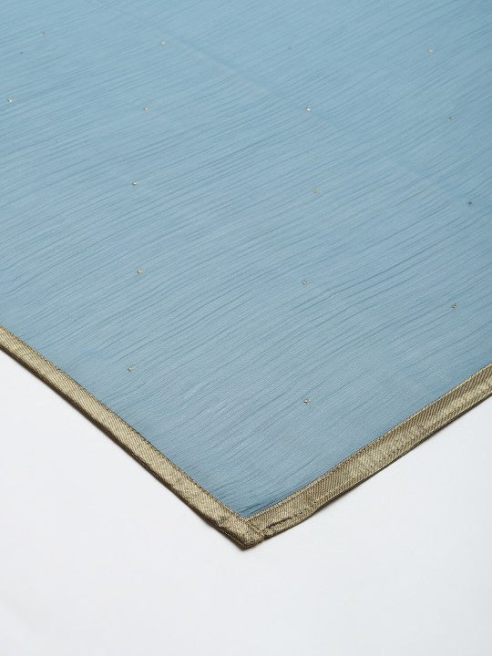 Product Details: Blue and gold-toned solid dupatta, taping border Size & Fit: Length: 2.25 m Width: 91.4cm Material & Care: Poly Crepe Machine-wash