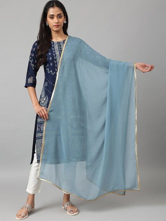 W Women Blue & Gold-Toned Poly Crepe Dupatta