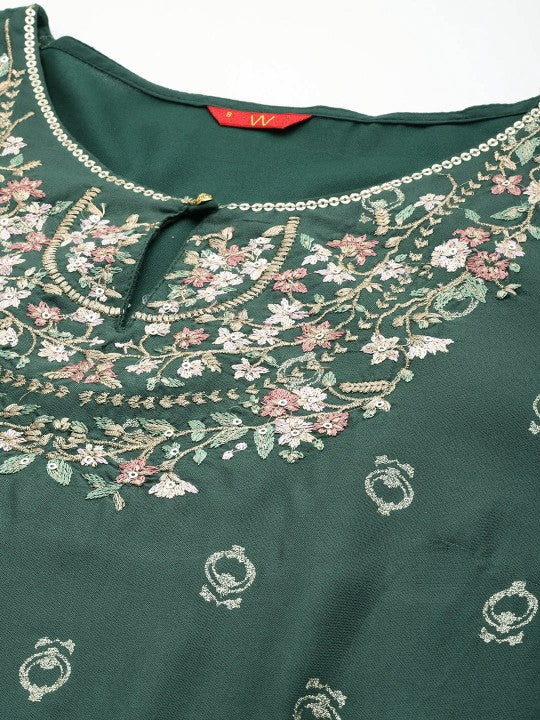 W Women Ethnic Motifs Print Embroidered Keyhole Neck Straight Kurta