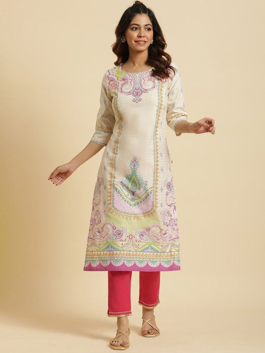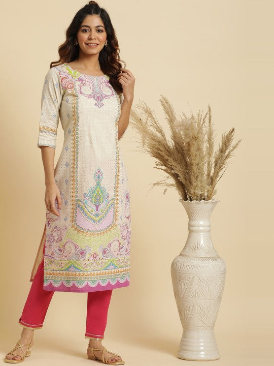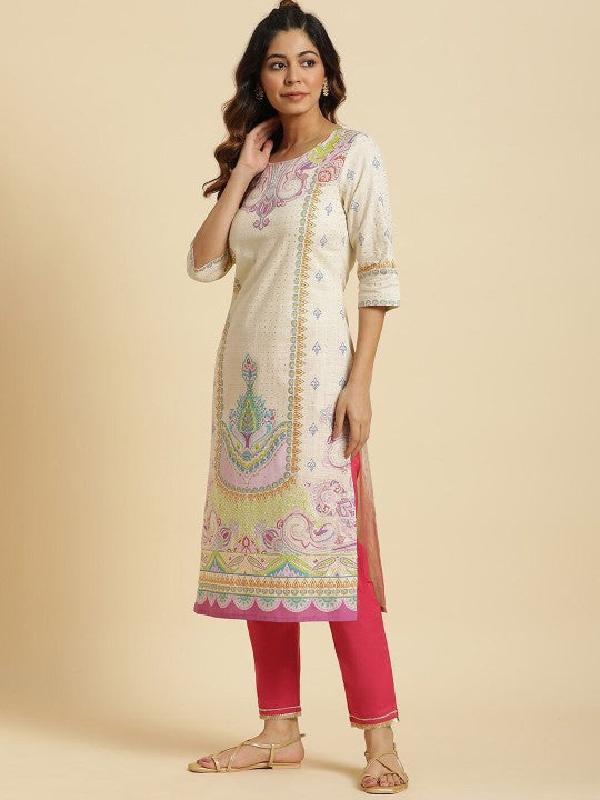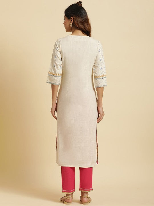 W Women Ethnic Motifs Printed Straight Pure Cotton Kurta