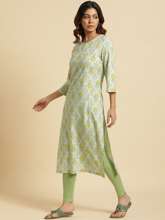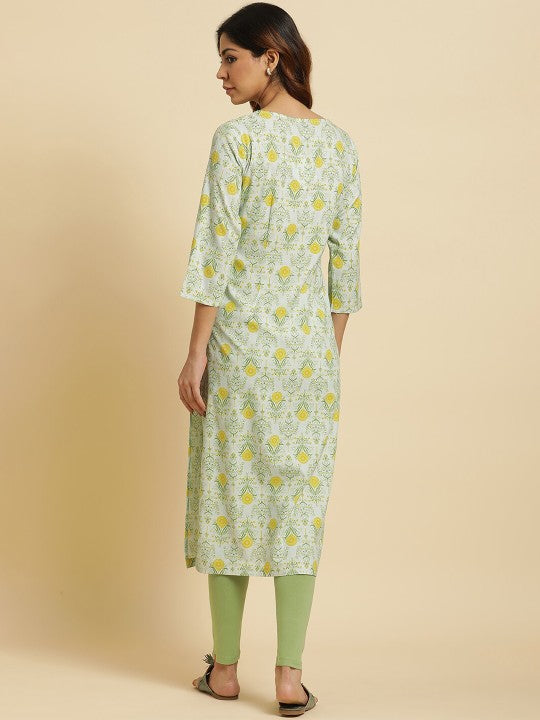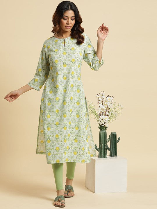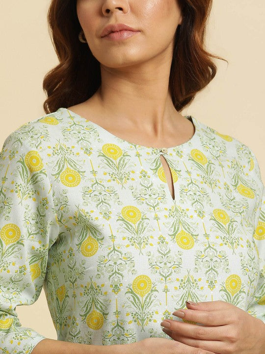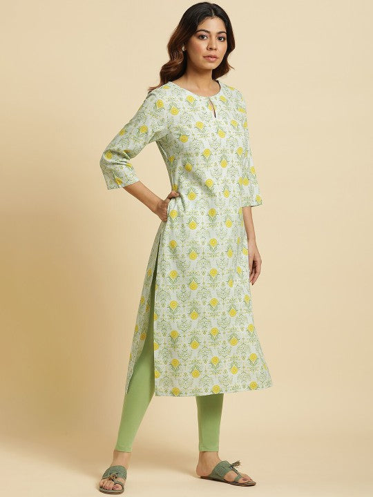 W Women Floral Printed Keyhole Neck Straight Kurta