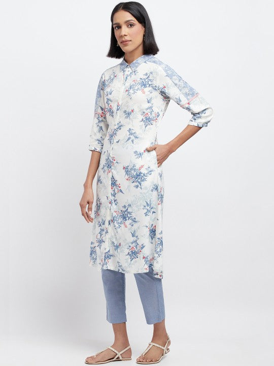 Product Details: Floral printed Shirt collar Three-quarter, regular sleeves A-line shape with regular style Calf length with curved hem Machine weave regular viscose rayon Material & Care: 100% Viscose Rayon Machine...