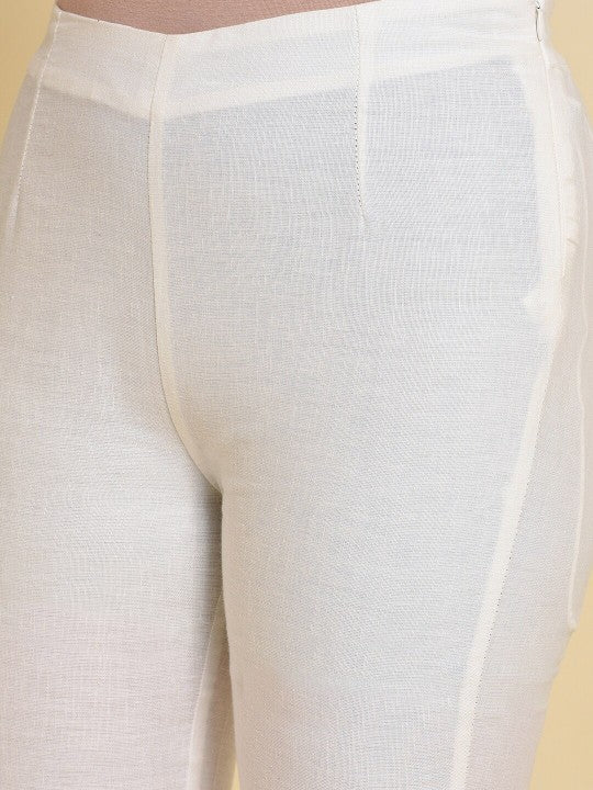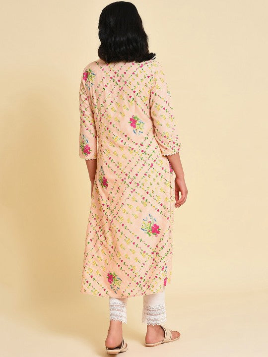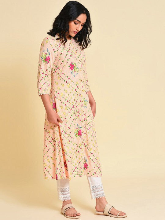 W Women Floral Printed Thread Work A-Line Kurta with Trousers