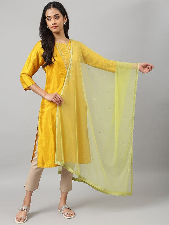W Women Green & Silver-Toned Solid Dupatta