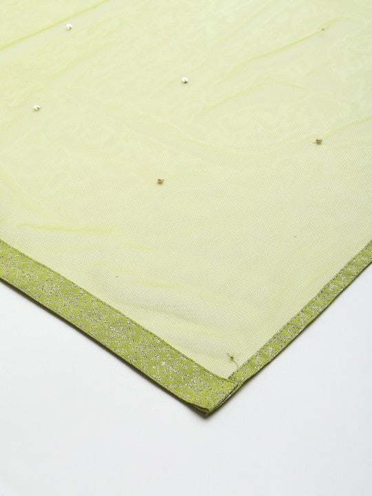 - Green and silver-toned solid dupatta, taping border