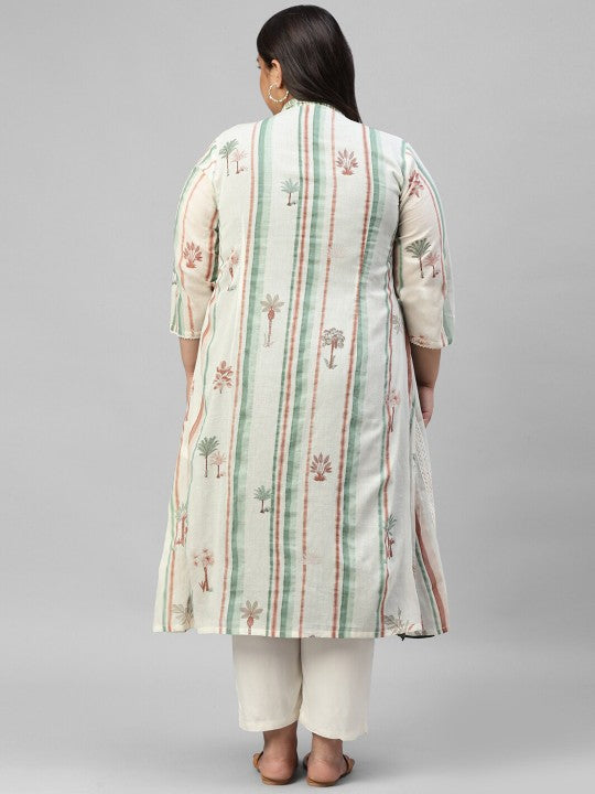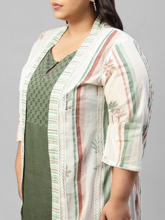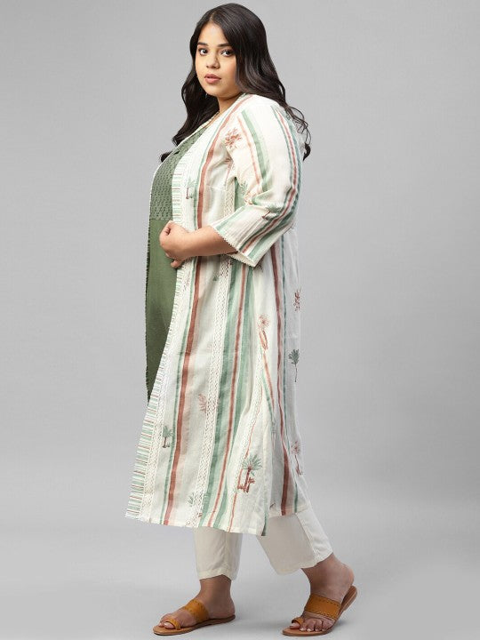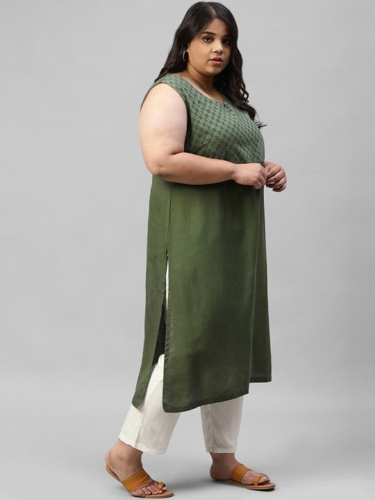 W Women Green Solid Yoke Design Keyhole Neck Kurta