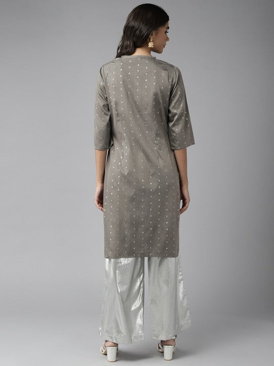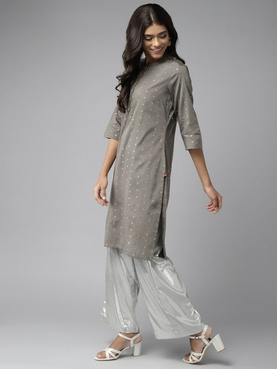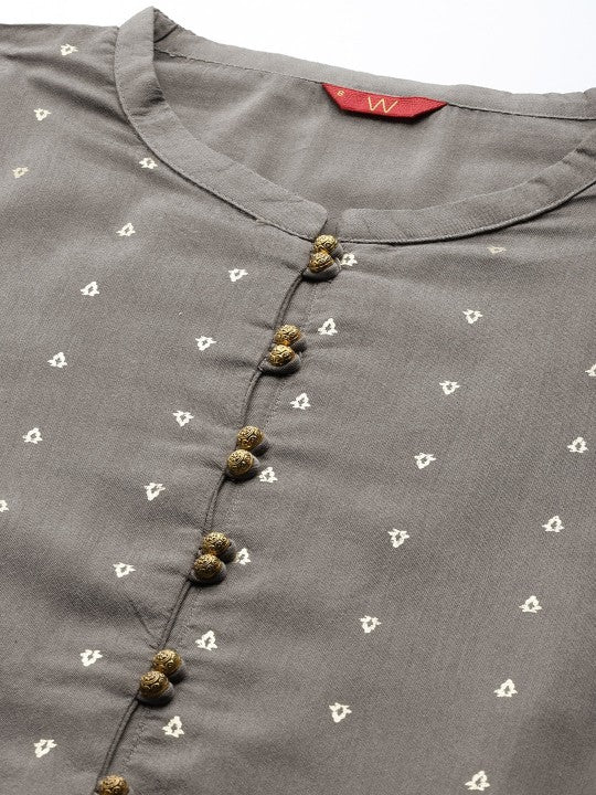 W Women Grey & Golden Ethnic Motifs Printed Kurta