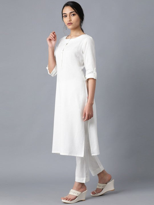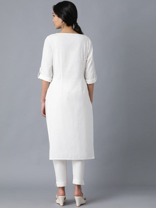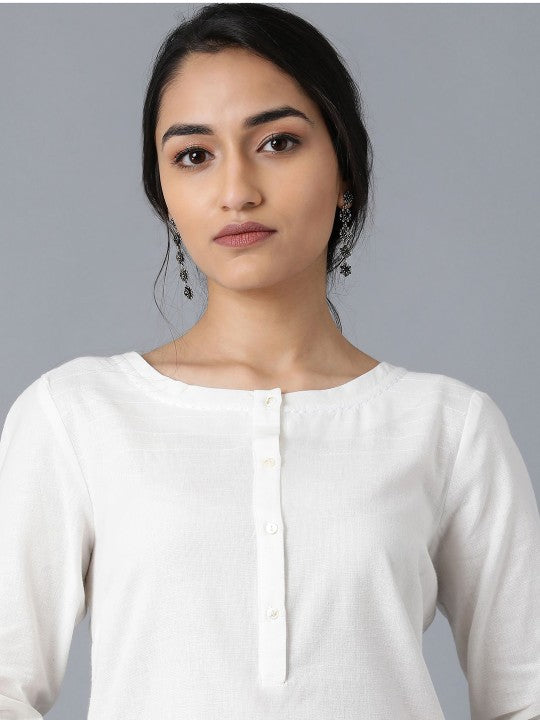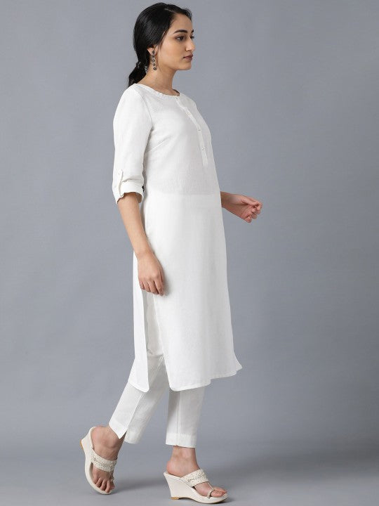 W Women Off White Solid Kurta