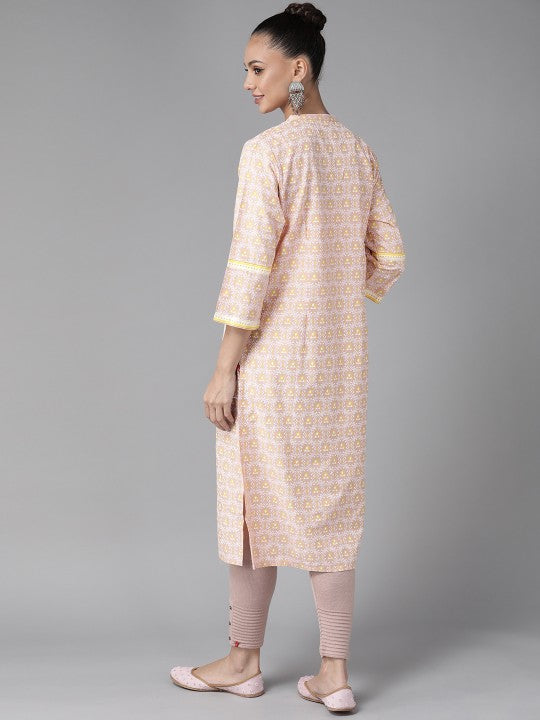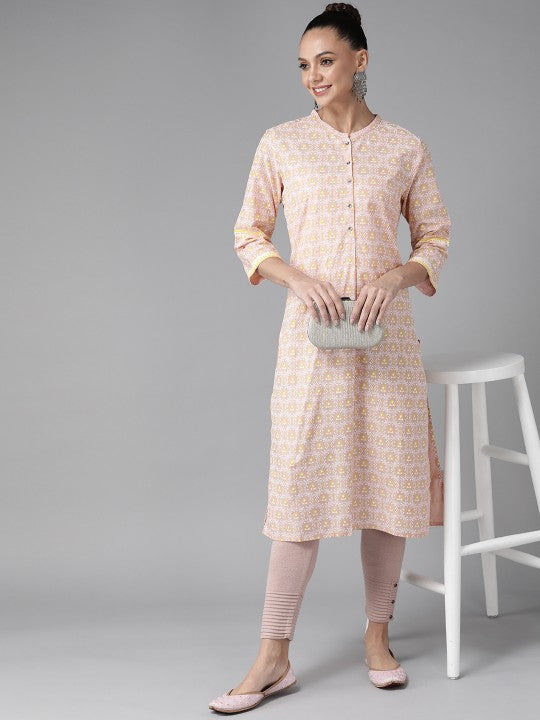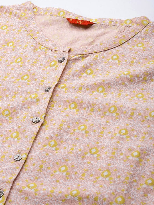 W Women Peach-Coloured & White Ethnic Printed Kurta