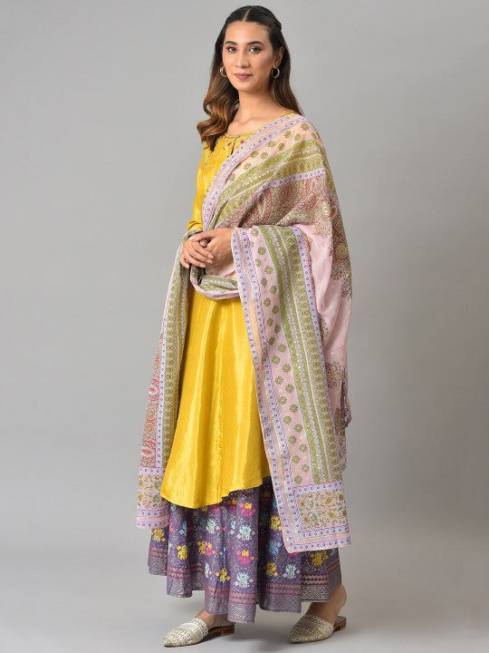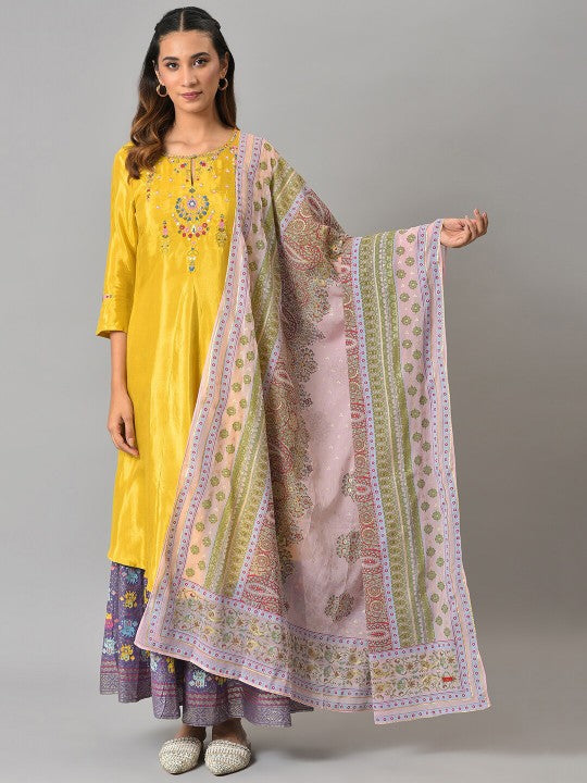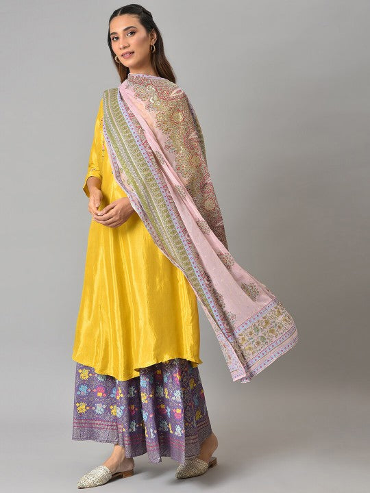 W Women Pink & Green Ethnic Motifs Printed Dupatta