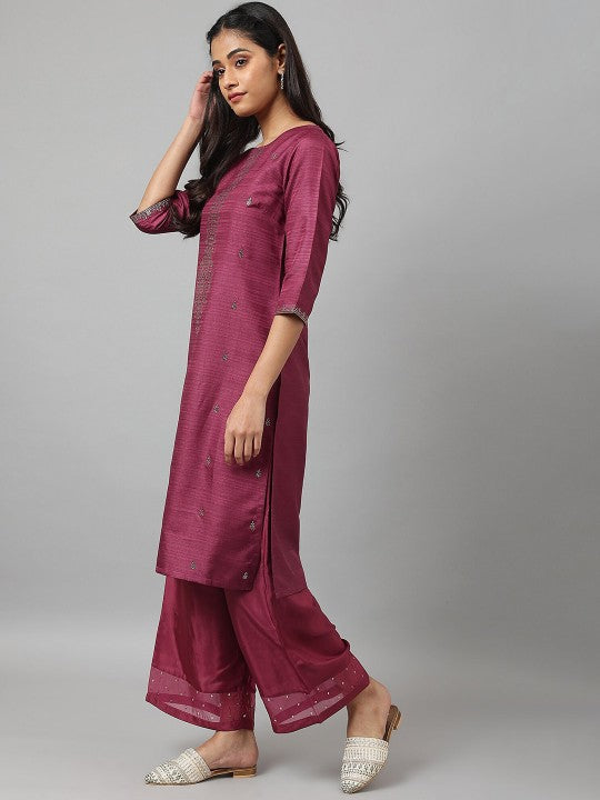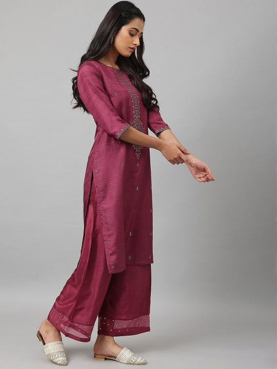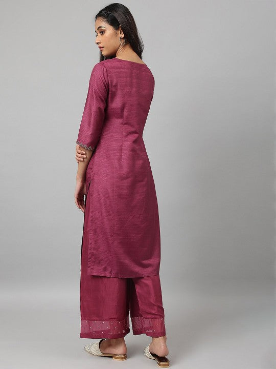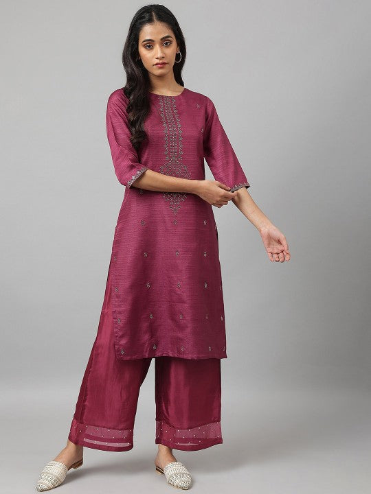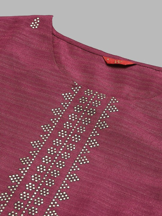 W Women Purple Yoke Design Embellished Kurta