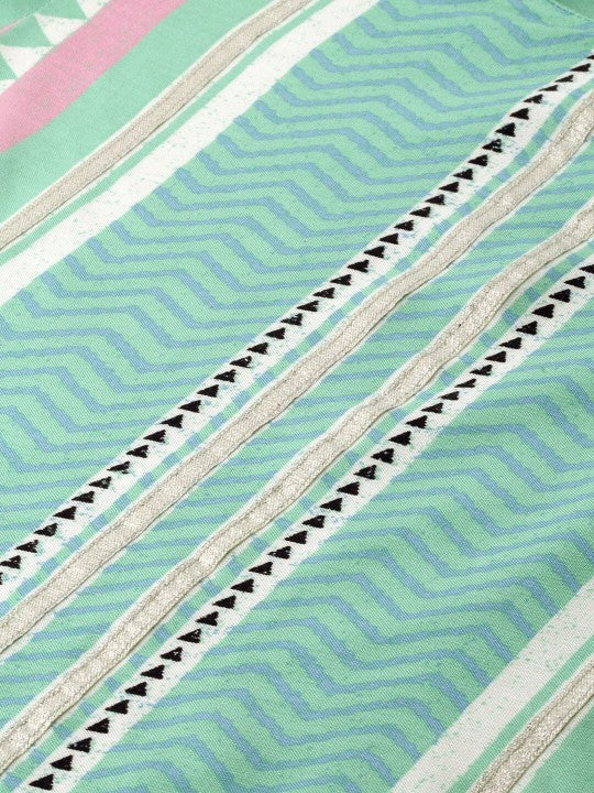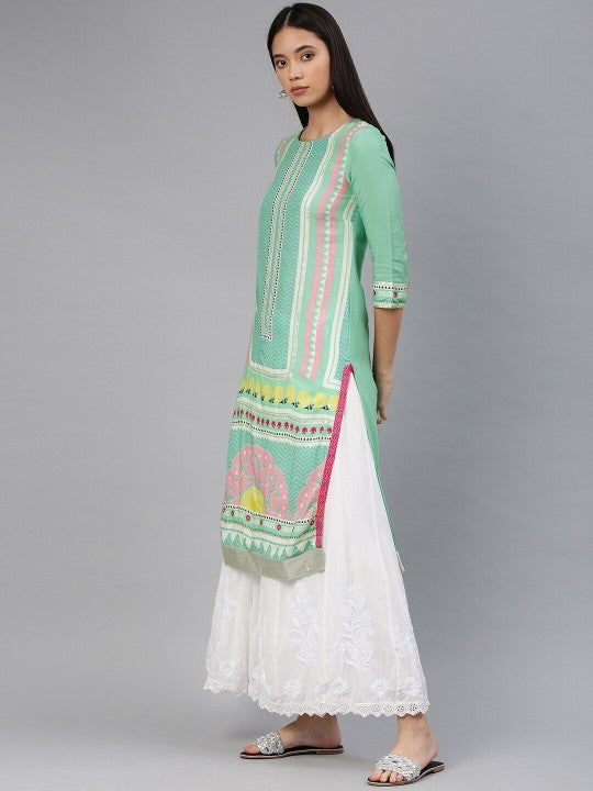 W Women Sea Green Printed Straight Sustainable Kurta